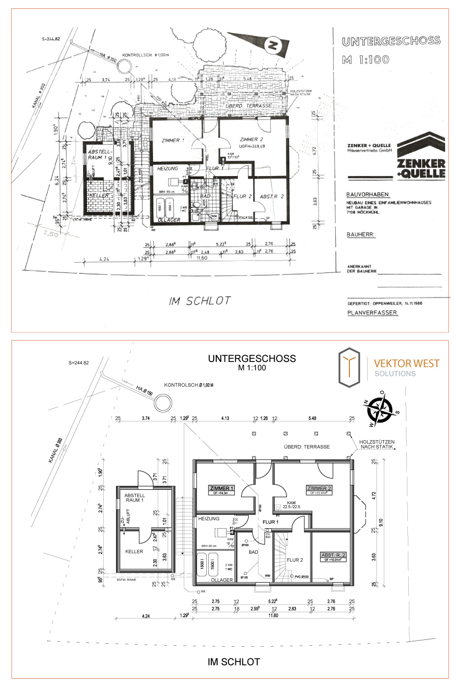 Die alten Pläne: Diese sind oft vergilbt, gefaltet,… und manchmal überlang.